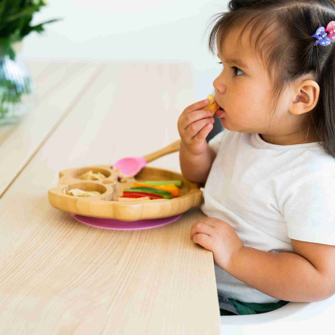 Do you need a plate that supports food variety? Look no further, this bamboo shaped owl plate has three sections that support and encourage a well-balanced nutritionally dense meal.