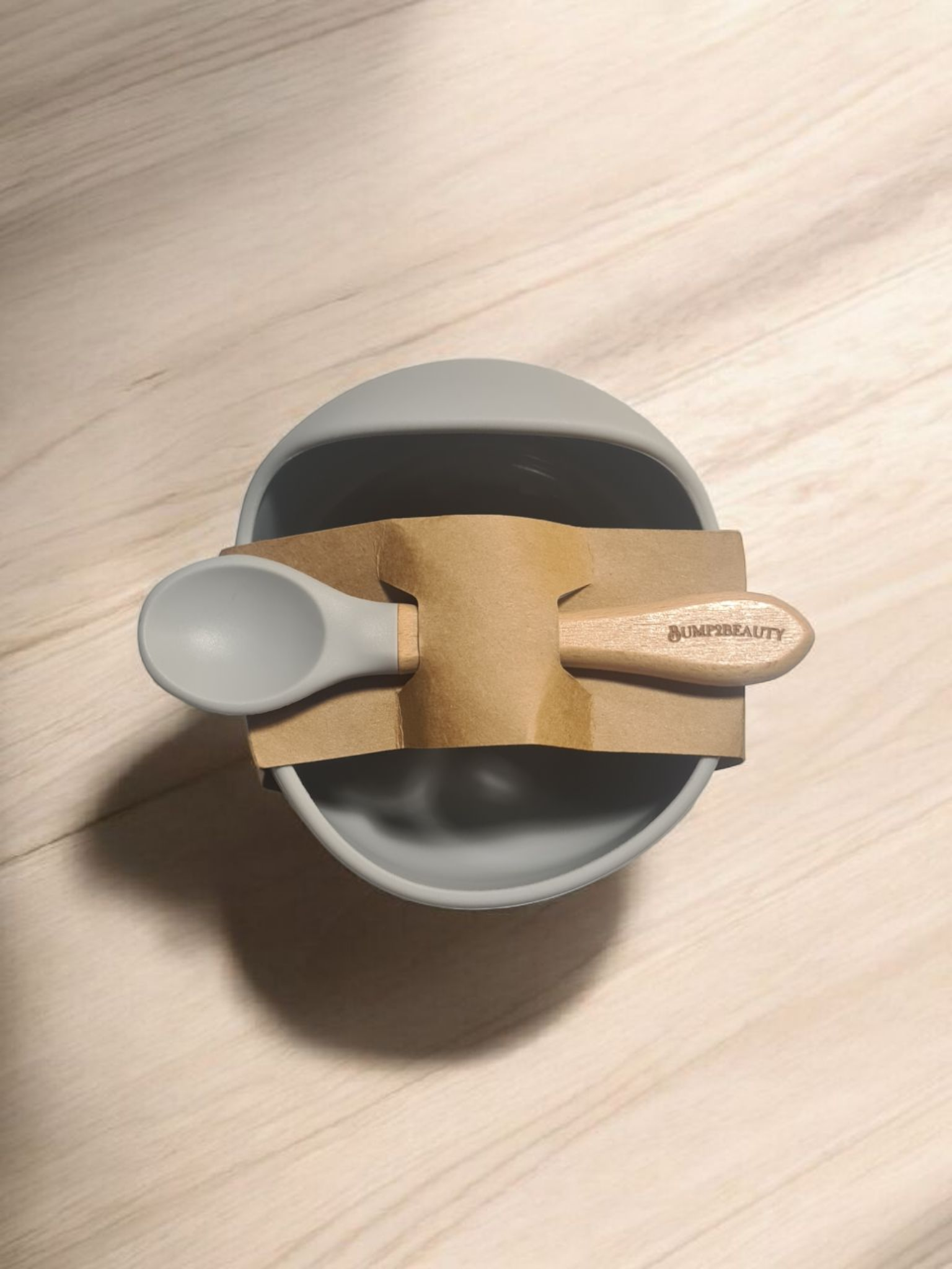 Introducing the Bump2Beauty Silicone Feeding Bowl & Spoon Set - an essential for hassle-free mealtimes. Crafted from durable silicone, this set includes a bowl and spoon made from sustainable wood. Say goodbye to spills and hello to easy cleaning with this must-have set.